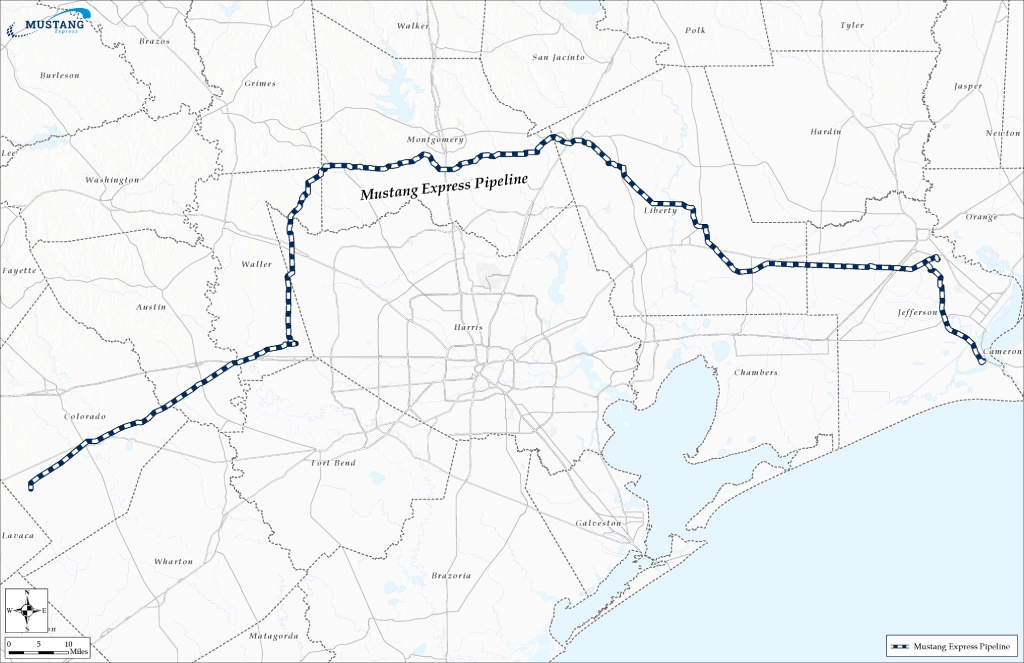 The Mustang Express Pipeline is a 236-mile intrastate natural gas pipeline designed to safely transport up to 2.5 billion cubic feet per day from receipt points in Colorado and Waller County, Texas, to Port Arthur LNG II (“PALNG II”) liquefaction facility in Port Arthur, TX.